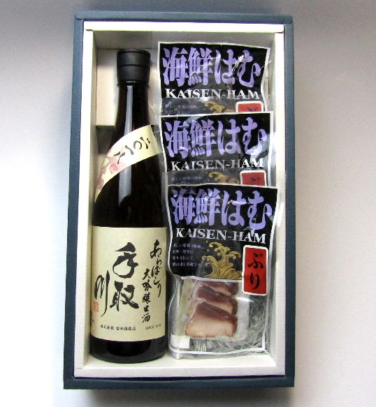 石川を代表する手取川の【大吟醸 あらばしり】と他所に無い酒の肴【ぶりハム】のコラボレーションギフトです。